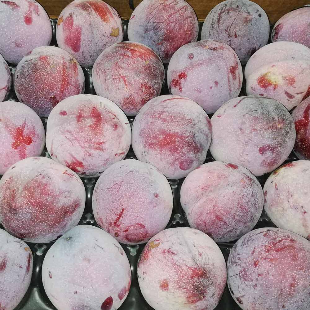 Meyve kabuğu: Koyu kırmızıya yakın mor, çok küçük nokta nokta benekli, üzeri küllü.